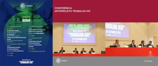 No passado dia 27 de outubro, estivemos presentes na conferência híbrida dedicada ao Anteprojeto “Trabalho XXI”, organizada pelo Conselho Regional de Lisboa da Ordem dos Advogados.
